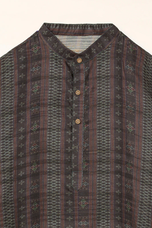Green Pure Chanderi Paan Zari Buta Kurta - With Elbow Sleeves