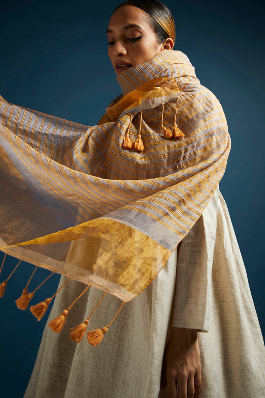 Green Pure Chanderi Tulip Zari Buta Kurta
