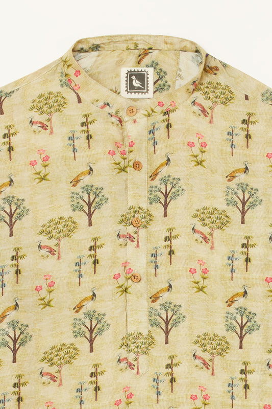 Pink Pure Chanderi Kurta With Gold Piping On Hidden Placket