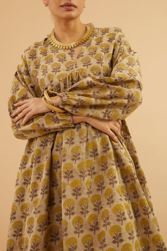 Beige Wide Leg Pants with Elastic and Drawstrings