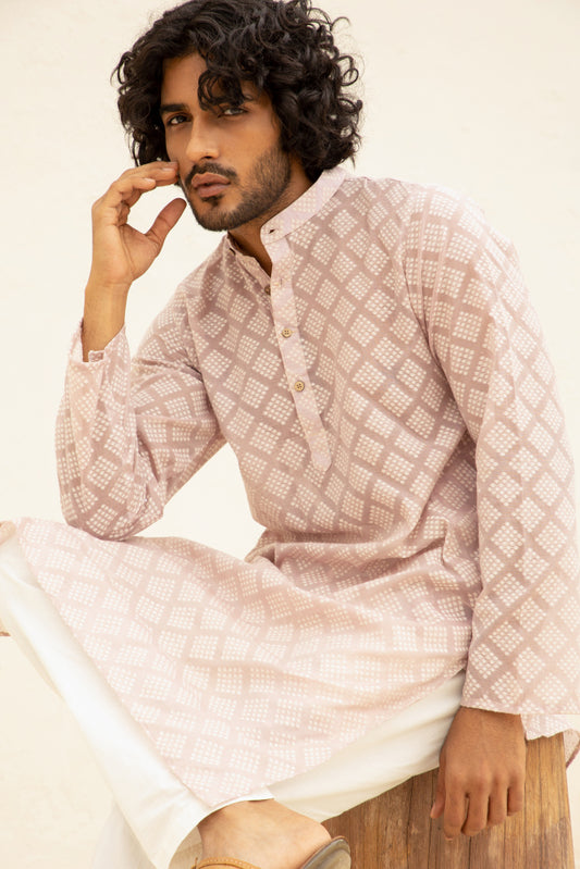 Off white Pure Chanderi Kurta With Gold Piping On Hidden Placket