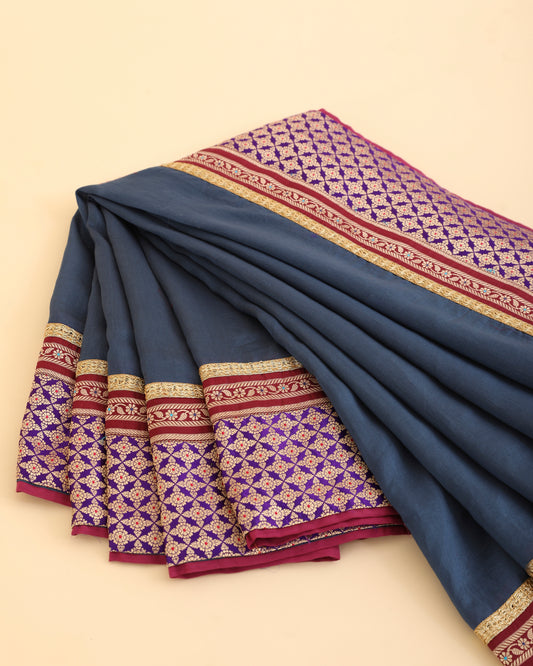 Midnight Blue Black Pure Chanderi Saree With Pure Katan Silk Brocade Border