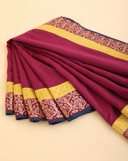 Off White Pure Chanderi Saree With Velvet And Gold Border