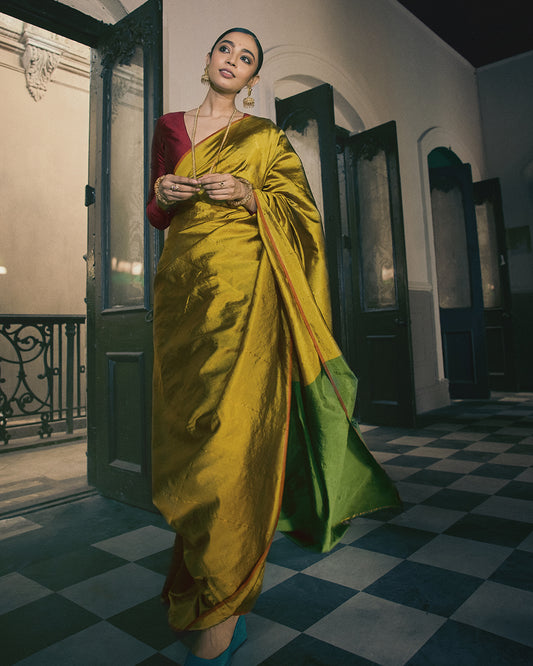 Charu Golden Green Saree