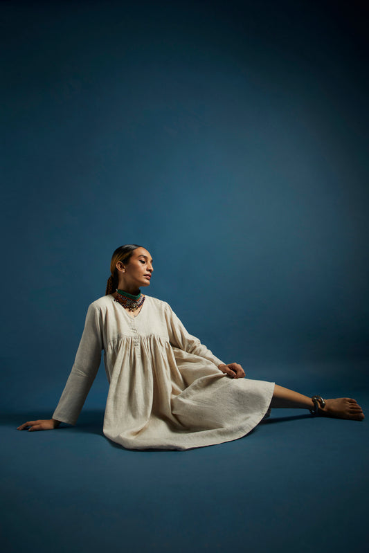 White Muslin Jamdani Midi Dress