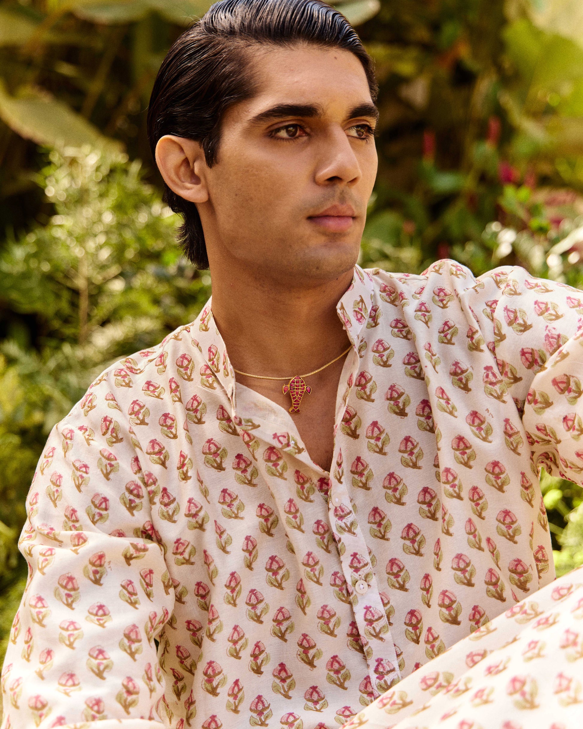 Fabric :Pure Chanderi fabric. 70 GSM. The Chanderi silk fabric is composed of 85% cotton and 15% silk. With pure cotton backing. Fabric sourced from artisans in Benaras and hand block printed with Azo-free dyes in Bagru.