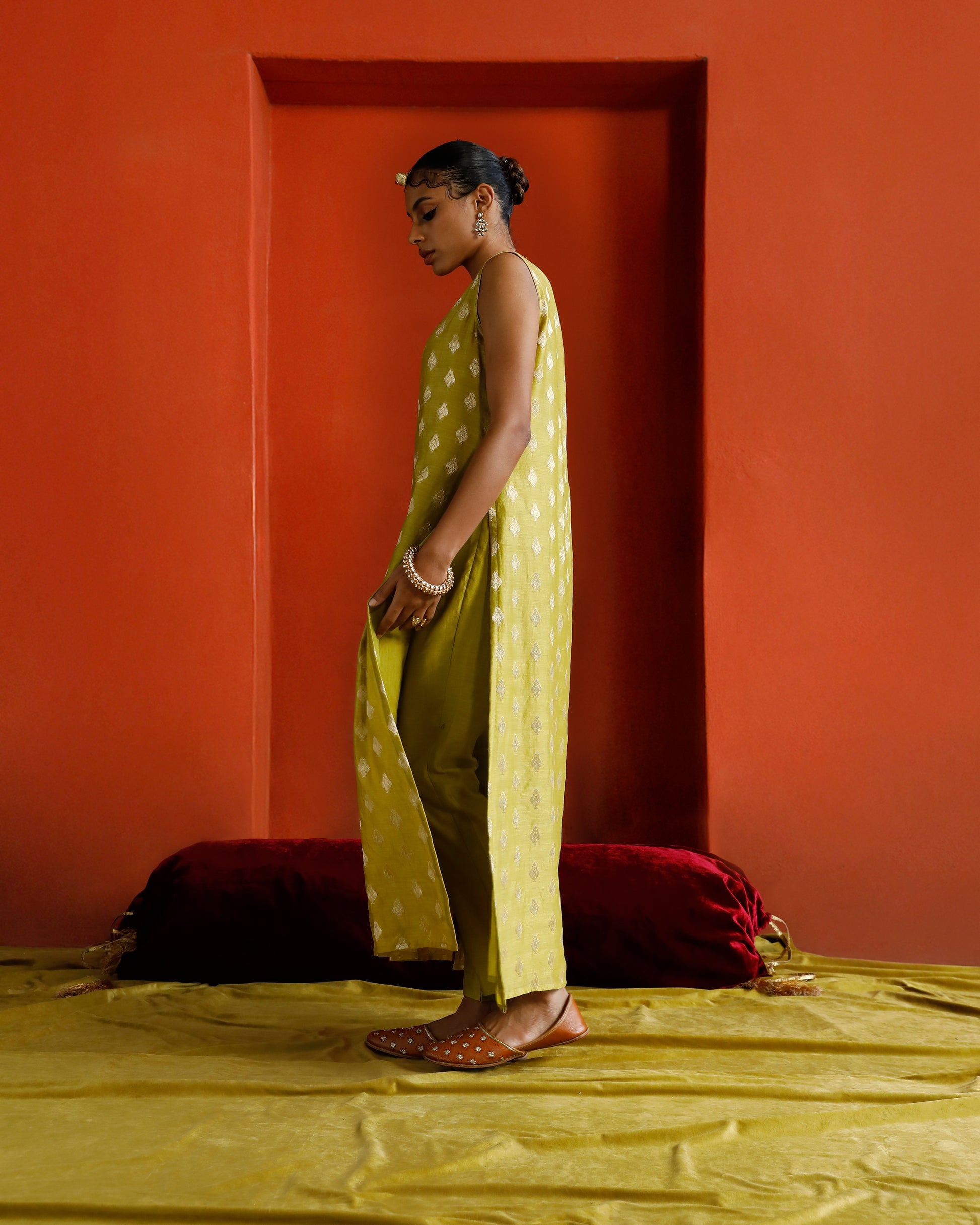Green Pure Chanderi Tulip Zari Buta Kurta