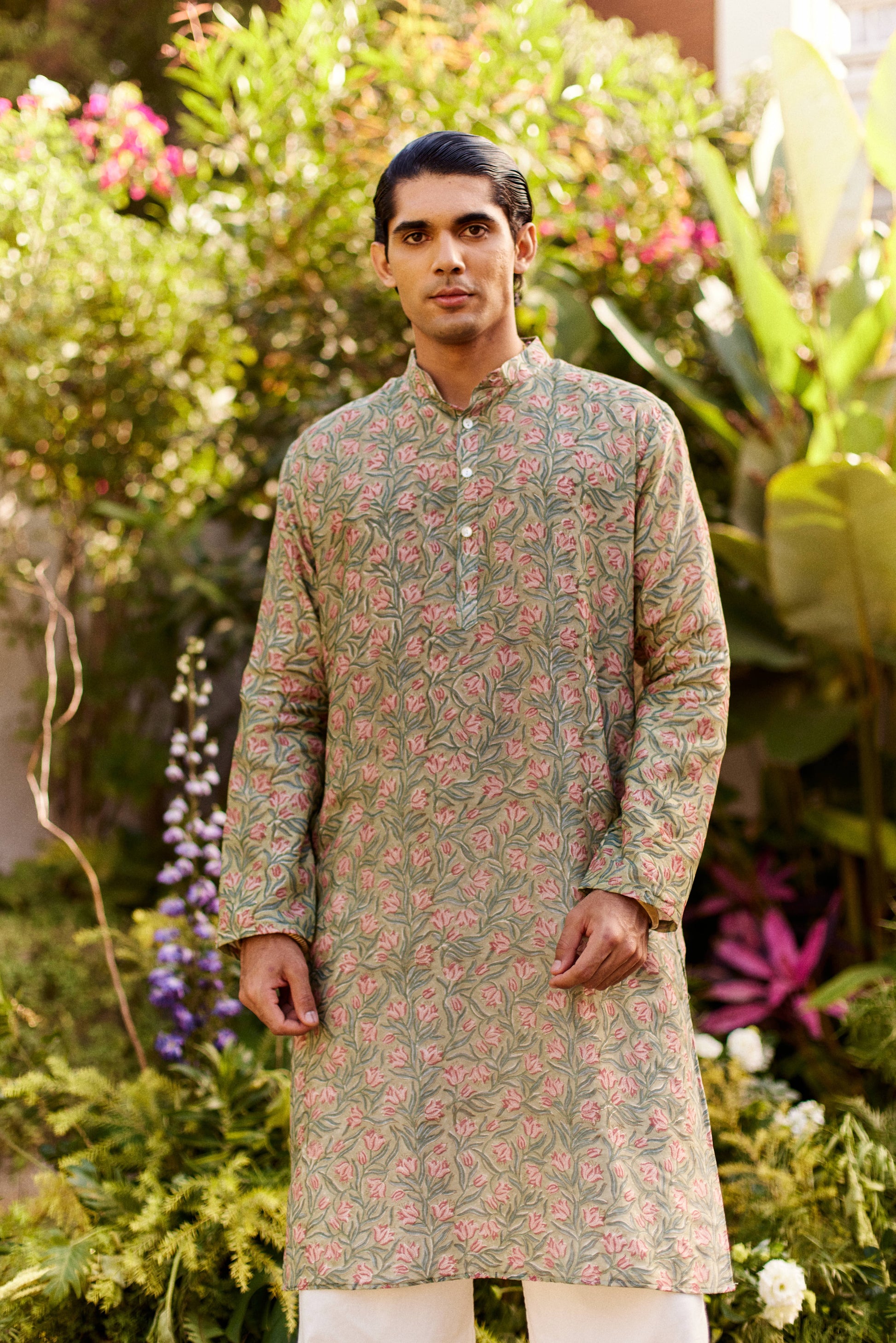 Chanderi handblock printed kurta with Mul cotton lining and regular placket.