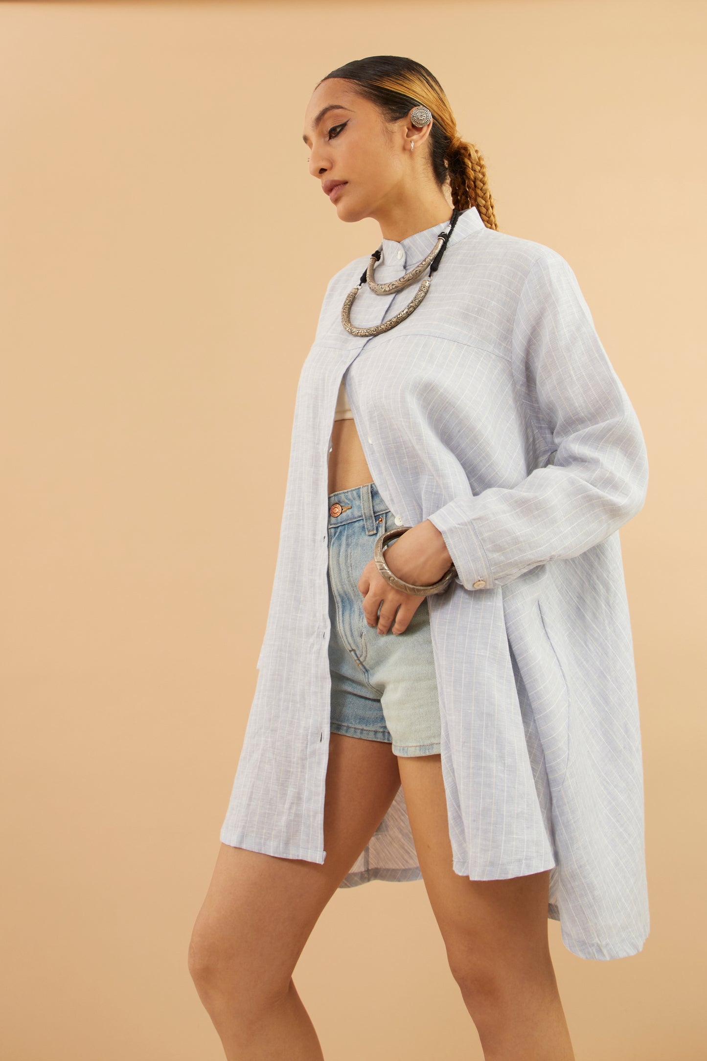 Dusky Blue Stripe Linen Tunic Shrug