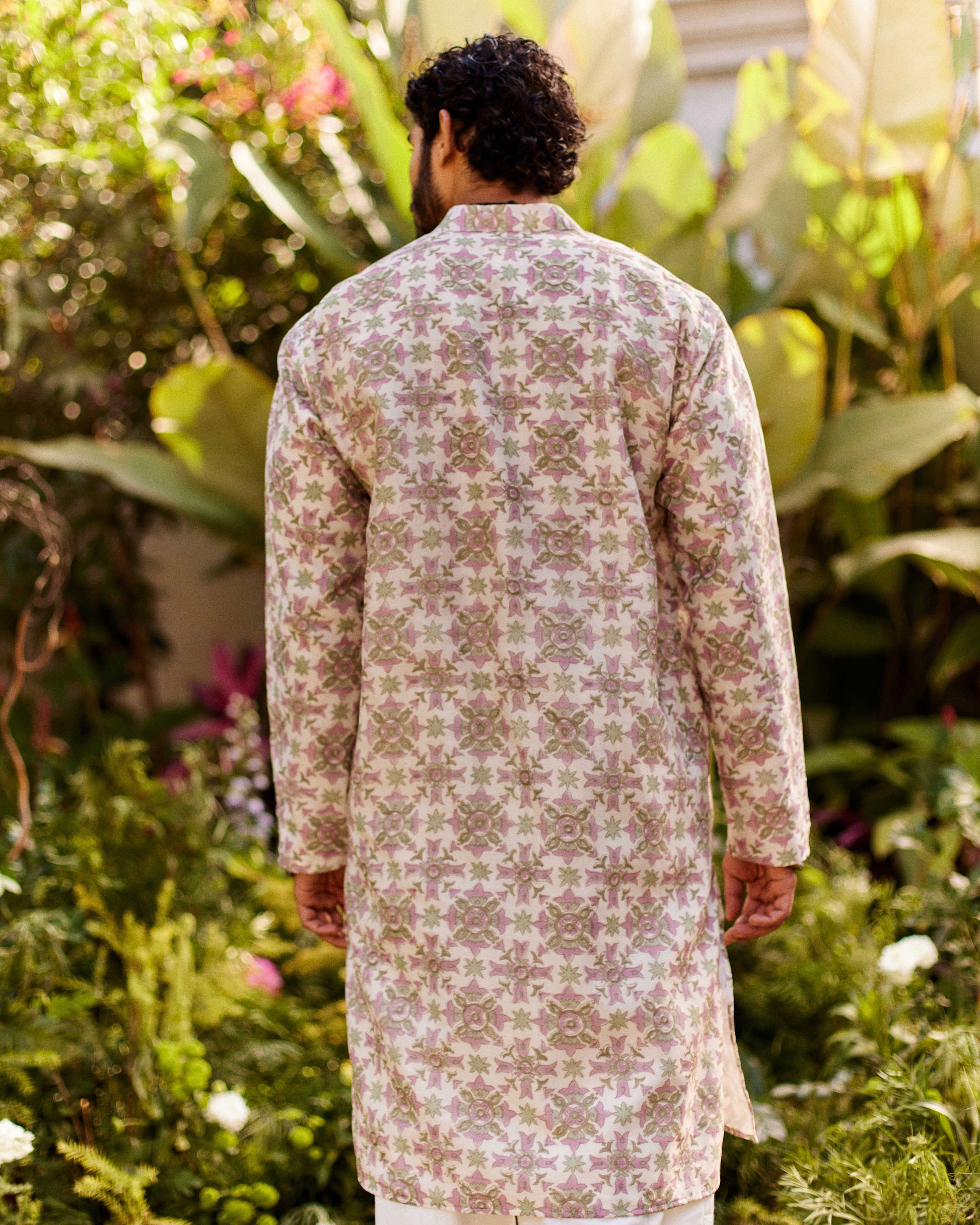Chanderi handblock printed kurta with Mul cotton lining and regular placket.