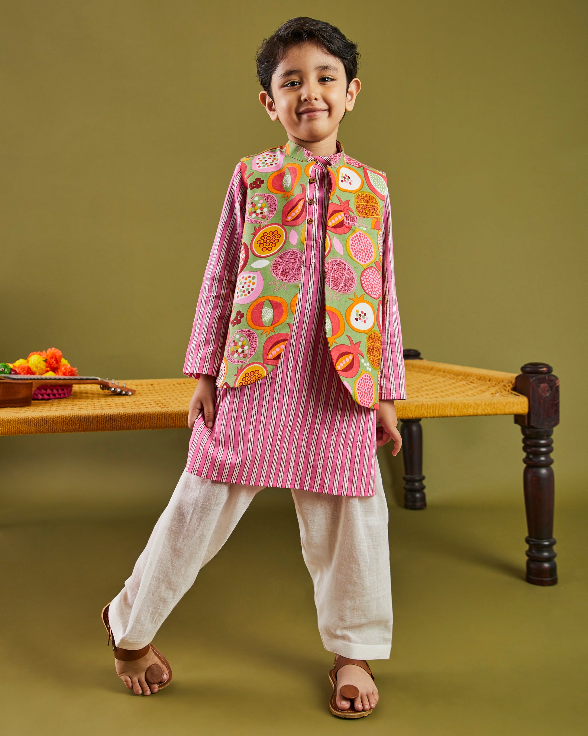 Product Description: Kids kurta pajama bandi 3 pc set.